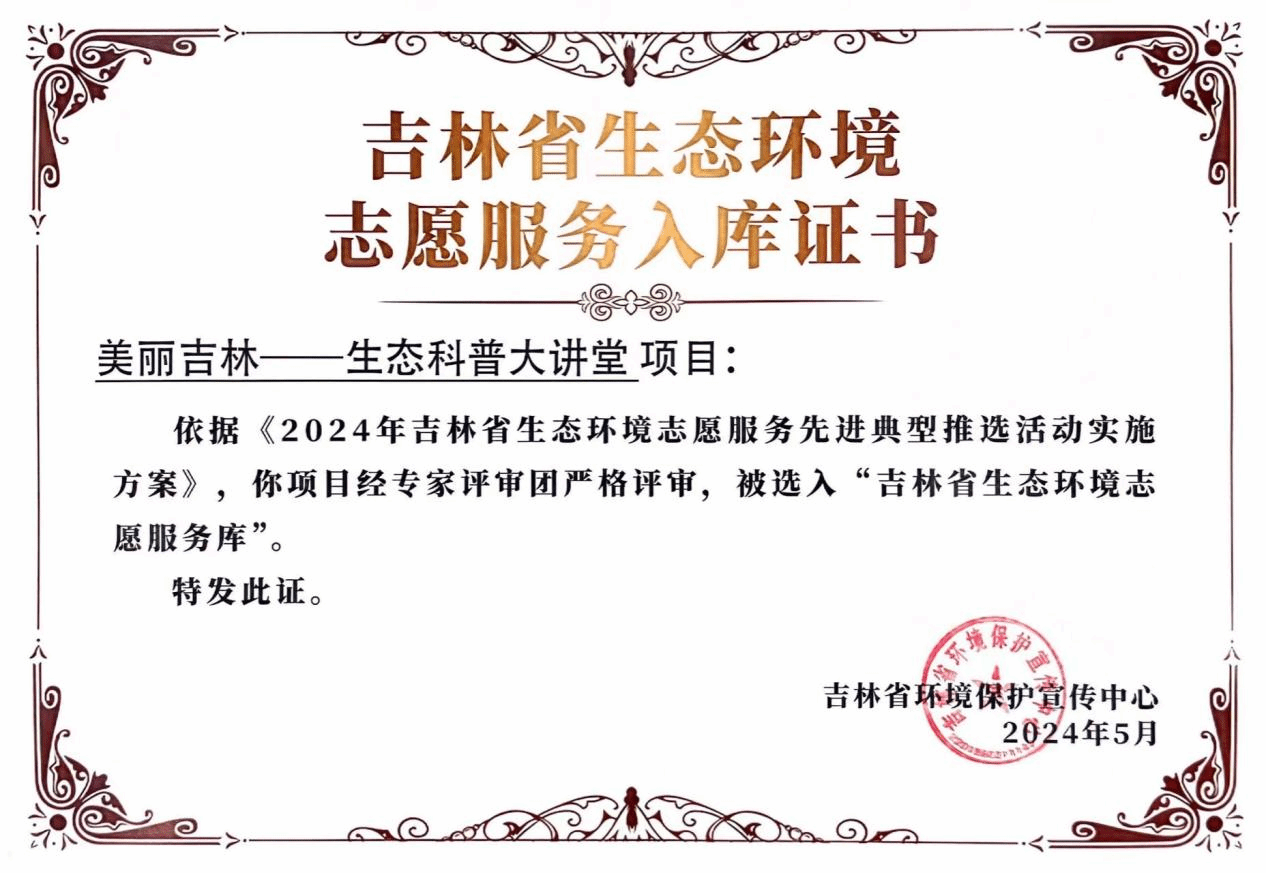 近日,吉林省生态环境厅、中共吉林省委社会工作部举办的“2024年吉林省生态环境志愿服务先进典型推选活动”公布了推选名单。我校自然博物馆“美丽吉林——生态科普大讲堂”公益志愿服务项目获评吉林省“十佳生态环境志愿服务项目”,并入选“吉林省生态环境志愿服务库”。自然博物馆自2007年新馆开放以来,秉承着博物馆教育理念,通过“生态科普大讲堂”等项目,志愿开展了植物、昆虫、鸟类和古生物、岩矿等方面内容的研学课程、...