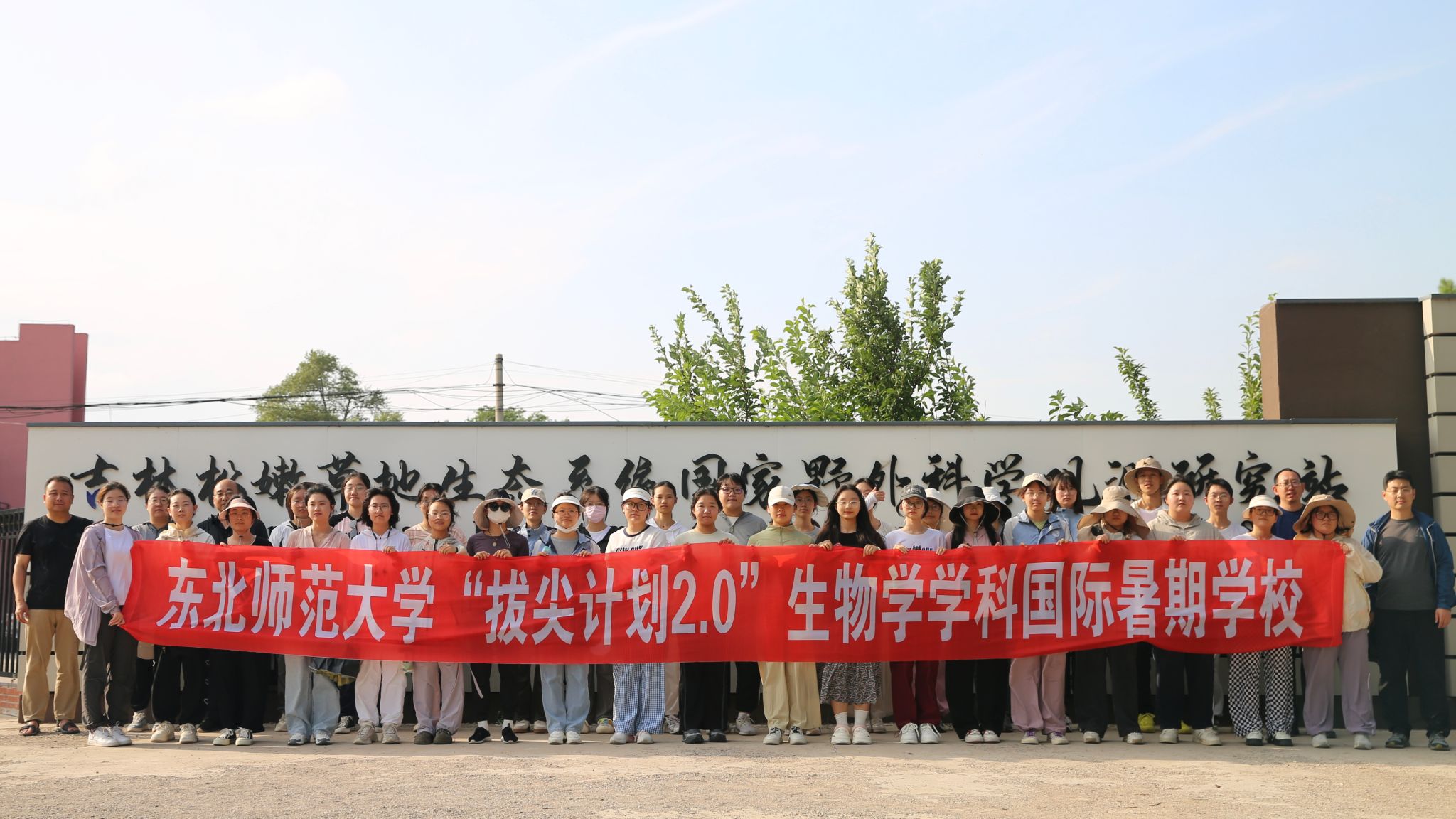 在实践教学环节,同学们带着课堂研讨的相关问题,首先参观了糖复合物教育部工程研究中心、植被生态科学教育部重点实验室和分子表观遗传学教育部重点实验室。其后,走出校园前往位于松原市的吉林松嫩草地生态系统国家野外科学观测研究站进行研学。学院副院长王俊锋教授和拔尖班班主任史宝库副教授为同学们介绍了野外站基本情况、特色及优势,参观了松嫩草地植物资源圃,讲授了松嫩草地的特征以及草地生态修复的相关知识。国家野外观测研究站负责人、我校研究生院副院长孙伟教授和吉林省长岭种马场负责人也一起参加了相关活动。