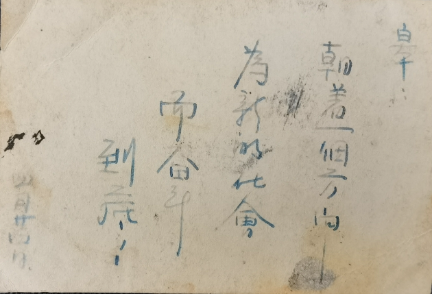 白皋赴沈阳学习之前,与未婚妻周玉梅去照相馆照了一张合影,未等照片洗出来即动身去沈阳学习,这一别就是近4年。照片洗出来后,周玉梅取出一张合影寄给白皋,并在照片背面写字寄语: