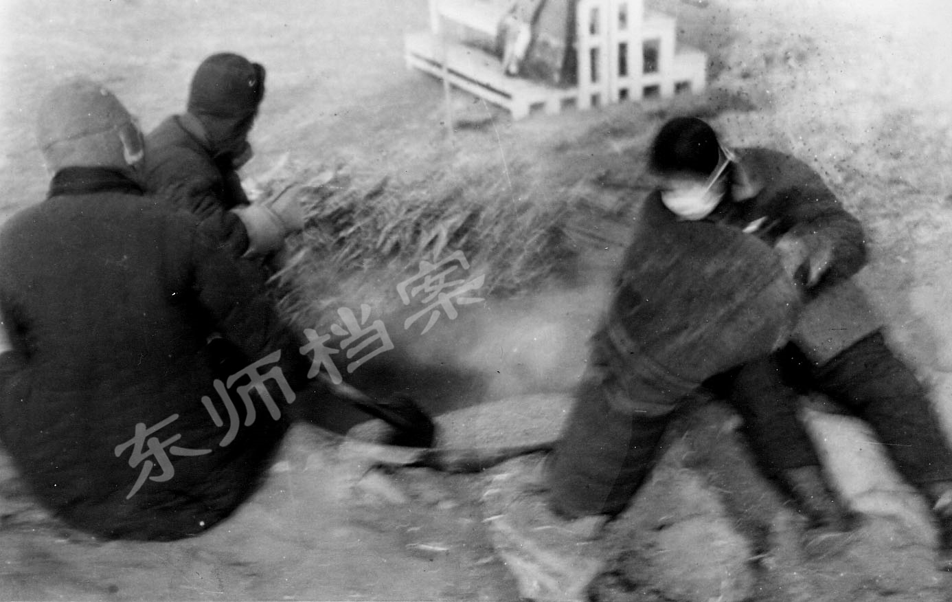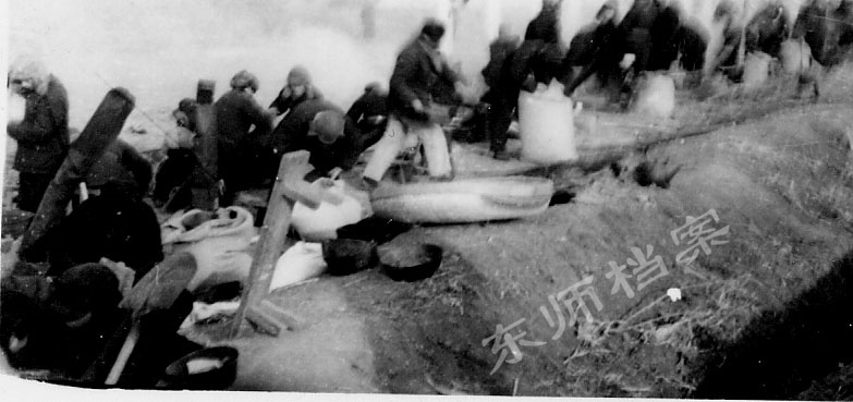 1950年冬,全校师生齐上阵,热火朝天的烧火炒面场面