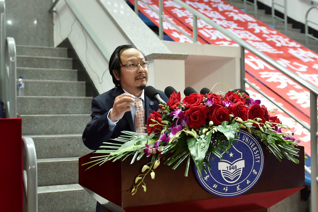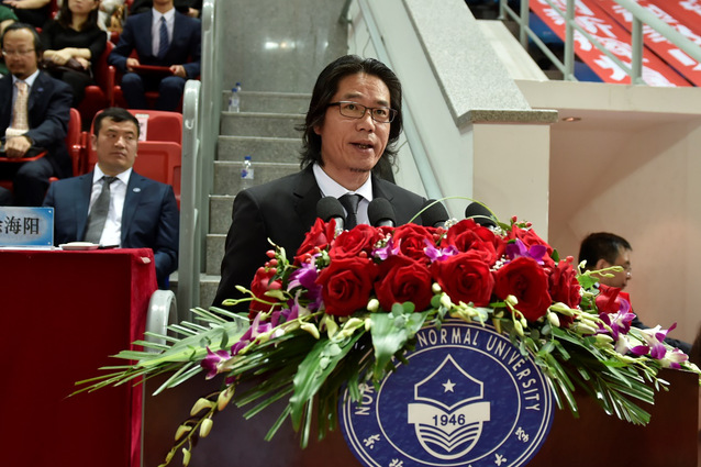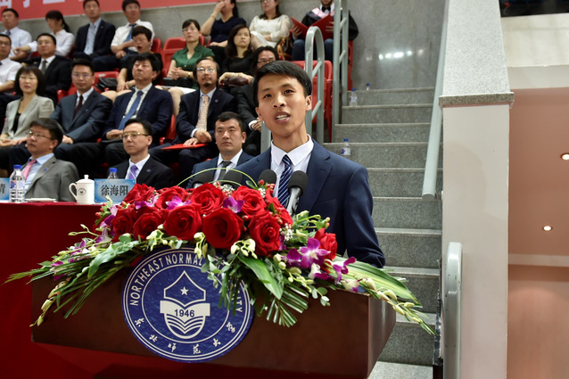教师代表、美术学院院长李书春教授,毕业生代表、政法学院本科毕业生刘强,留学生代表、国际汉学院本科毕业生斯比罗斯,校友代表、95届中文系毕业生、附属中学首席教师、特级教师孙立权教授作了充满激情的发言,引起了全场的热烈共鸣。