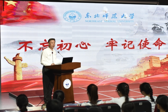 随后,巴音朝鲁一行观摩了杨晓慧为学生上的思政课。在思政课上,杨晓慧谈到,此次先进典型教育工作在东北师大举行,深入学习郑德荣同志先进事迹,充分体现了省委领导对东北师大的高度信任和肯定,对学校发展的悉心关怀和支持。郑德荣同志于2018年5月3日逝世,到2018年6月27日被中央追授为“全国优秀共产党员”,被选树为全党全国学习的典型,有学校的努力,更离不开省委的直接指导和全力推动。杨晓慧表示,郑德荣先生一生信仰深沉、学养深邃、修养深厚,取得的伟大成就不仅为东北师大争光,为吉林省的党建事业争光,也为党的建设伟大工程作出了巨大的贡献。杨晓慧强调,大学之大,在于大师,在于历史和文化的传承,“强师报国”的东师精神,源于我校在73年办学历史中红色基因的血脉相承,坚守于党和国家对优秀教师的需求。杨晓慧指出,过去,东师毕业生以学识扎实、为人朴实、工作踏实的“三实”品格受到社会赞誉,现在,学校党委从郑德荣精神中提炼增加了一个新的维度——信念坚实,“四实”品格将成为新时代东师人鲜明的精神标识。今后,东北师大将以新时代党,国家,民族的需要为出发点,用郑德荣精神激励师生不忘初心、牢记使命,培养出更多郑德荣式的好老师、好学生。