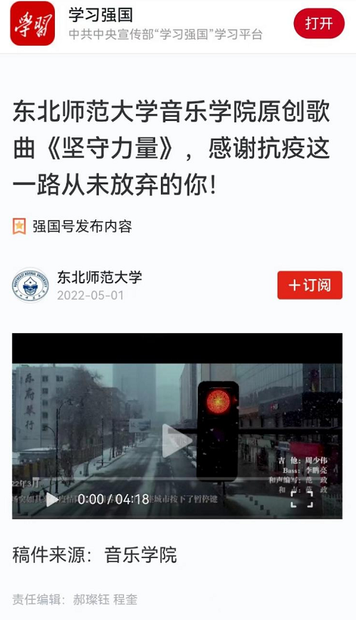 音乐学院出品原创歌曲《坚守力量》被多家媒体转载-久久久久国产成人精品亚洲综合_亚洲精品国产A久久久久久_精品亚洲日韩国产精品一区二区三区_AV无码久久无码_国产精品国产亚洲精品看不卡_午夜亚洲精品国产乱码久久久人妻_久久久99无码精品一区二区三区_欧美日韩精品国产精品一区二区三区高清免费